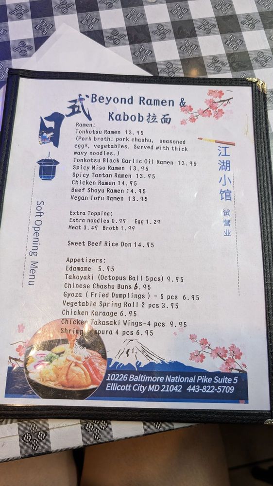 Nestled in Ellicott City, Beyond Ramen & Kabob invites food lovers to explore a vibrant fusion of Japanese and Middle Eastern flavors. The menu boasts a delightful array of dishes, highlighted by their renowned tonkotsu ramen, celebrated for its robust broth and tender pork. Customers rave about the skewers, featuring wagyu, chicken, beef, and more, each perfectly seasoned to tantalize the palate.